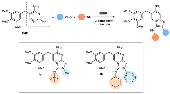- Pedrola, M.; Jorba, M.; Jardas, E.; Jardi, F.; Ghashghaei, O.; Viñas, M.; Lavilla, R. Multicomponent reactions upon the known drug trimethoprim as a source of novel antimicrobial agents. Front. Chem. 2019, 7, 1–9. [Google Scholar] [CrossRef]
