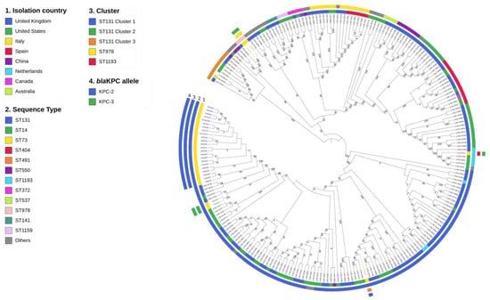 The comparison of the 29 KPC-Ec isolates with other E. coli genomes deposited in the PATRIC database is shown in Figure 1. Notably, most of them showed a major similarity with KPC-Ec strains collected in the UK.