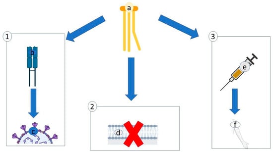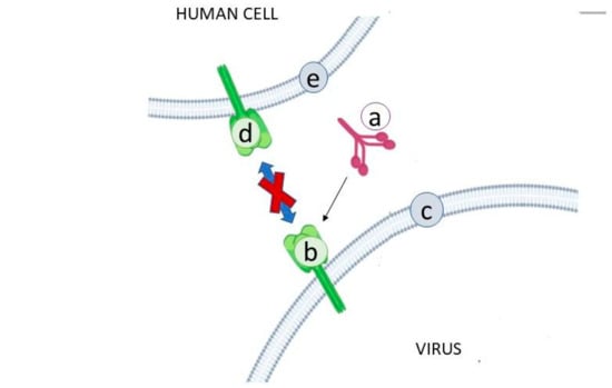 Viruses have had evolutionary success for four main reasons: a massive genetic variation, a variety in means of transmission, a good mechanism to replicate in the host and the ability to survive in the host [] A viral infection is generally divided into three steps []: (i) the virus binds to cell receptors on the cell membrane, transferring its genome into the cytoplasm—this process allows the virus to integrate into the host’s genome; (ii) the cells are forced to reproduce the virus genome; (iii) the protein and virion progeny are produced.