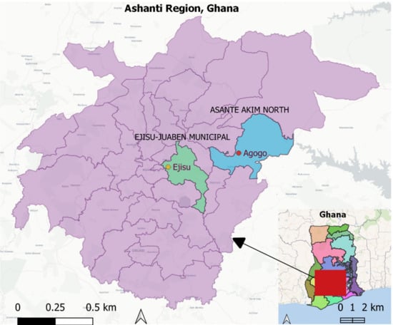Geographical location of Agogo and Ejisu in the Ashanti region, Ghana.