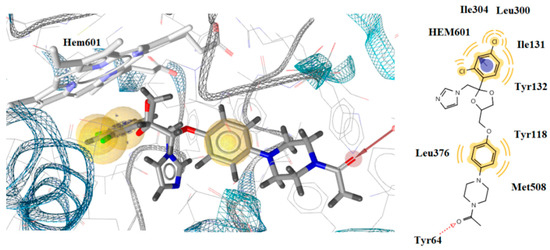 Docked conformation of ketoconazole in lanosterol 14α-demethylase of C. albicans (CYP51ca).