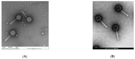 - Ackermann, H.W. Basic Phage Electron Microscopy. Methods Mol. Biol. 2009, 501, 113–126. [Google Scholar] [CrossRef]