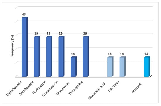 Globally in the analysed samples, the most frequently detected antibiotics were fluoroquinolones (ciprofloxacin/enrofloxacin) and macrolides (clarithromycin/erythromycin) as tetracycline and sulfamethoxazole.