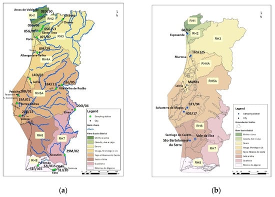 (a) Surface-water sampling sites; (b) groundwater sampling sites. Maps provided by the Portuguese Environmental Agency.