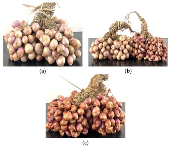 Photos of Allium cepa var aggregatum (White) (a); Allium cepa var aggregatum (White and Pink varieties together) (b) and Allium cepa var aggregatum (Pink) (c).