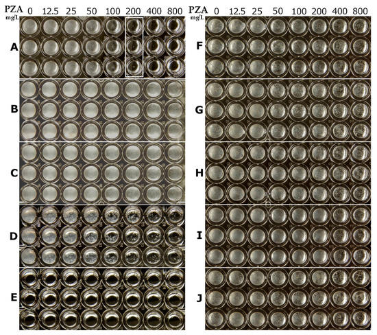 4.3. Determination of MICs of PZA Using Broth Microdilution Method