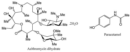 Chemical structures of azithromycin dihydrate (AZT DH) and paracetamol (PCM).
