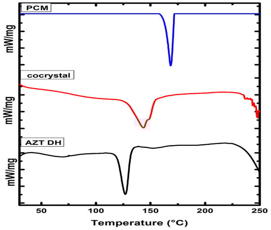 The DSC thermograms AZT DH, PCM and cocrystal.