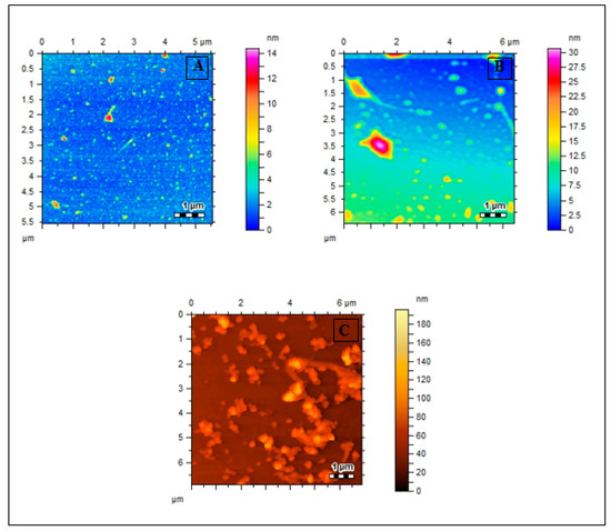 AFM images of (A) Met-Lip, (B) MOX-Met-Lip, (C) SUL-Met-Lip.