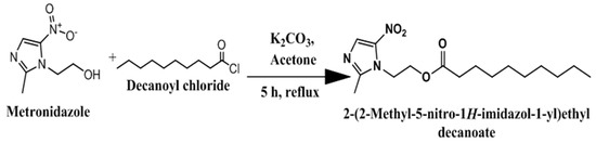 2.1. Synthesis of 2-(2-Methyl-5-nitro-1H-imidazol-1-yl)ethyldecanoate (DC-Met-10)