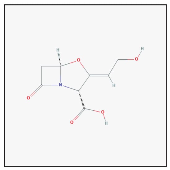 Chemical structure depiction of clavulanic acid (https://pubchem.ncbi.nlm.nih.gov (accessed on 1 May 2021)).