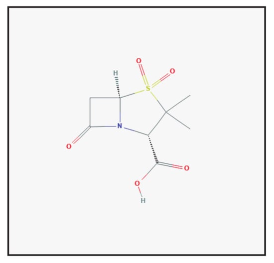 Chemical structure depiction of sulbactam (https://pubchem.ncbi.nlm.nih.gov (accessed on 1 May 2021)).