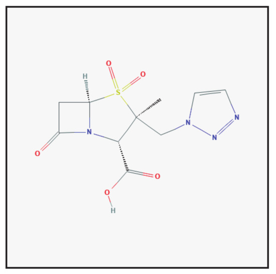 Chemical structure depiction of tazobactam (https://pubchem.ncbi.nlm.nih.gov (accessed on 1 May 2021)).