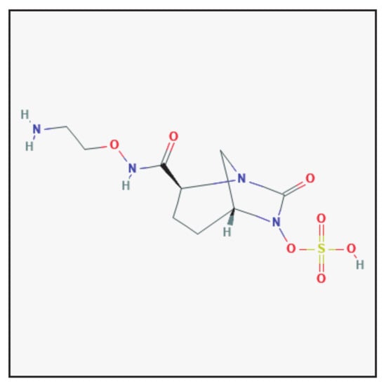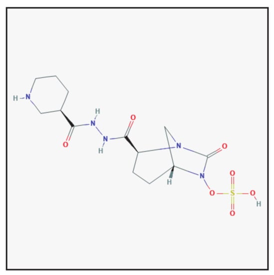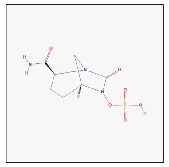 Chemical structure depiction of avibactam (https://pubchem.ncbi.nlm.nih.gov (accessed on 1 May 2021)).