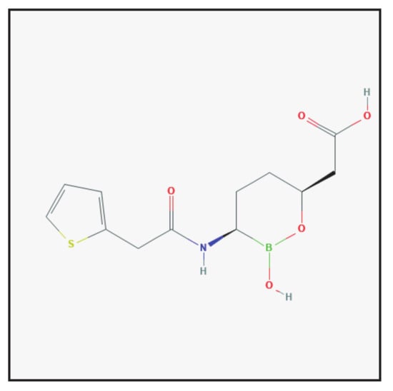Chemical structure depiction of vaborbactam (https://pubchem.ncbi.nlm.nih.gov (accessed on 1 May 2021)).