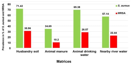 - Friese, A.; Schulz, J.; Zimmermann, K.; Tenhagen, B.-A.; Fetsch, A.; Hartung, J.; Rösler, U. Occurrence of livestock-associated methicillin-resistant Staphylococcus aureus in Turkey and broiler barns and contamination of air and soil surfaces in their vicinity. Appl. Environ. Microbiol. 2013, 79, 2759–2766. [Google Scholar] [CrossRef]