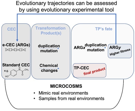 “Complexity”, “decision-making”, “environmental risk assessment”, “modelling”, “regulations”, “toxicity” and “validation” are all important keywords related to the complex matter of the fate and evolution of an e-CEC in the environment. We are far from being able to integrate or unravel the resolution of just one of these words in risk assessment. Nevertheless, mathematical modelling and metadata analyses are the tools that can integrate and implement the evolutionary data into a predictive risk algorithm. A recent review by Knight and collaborators [68] discusses the opportunity to predict antibiotic resistance evolution with mathematical models and to generate the evidence base needed to help policies in managing antibiotic resistance. It is clear that in this context the application of such empirically observed evolutionary experiments to support mathematical modelling could provide a solid foundation for ARB/ARG control policy and risk assessment. Another approach is to include data-mining for metadata analysis and adopt the screening of literature to define a behavior or a trend; for example, the fitness costs associated with single mutational events that confer resistance have been determined via metadata analysis [52]. This approach has unraveled a simple fact: the strategy of stopping the use of a drug once resistance has evolved is not always effective in eliminating resistance.