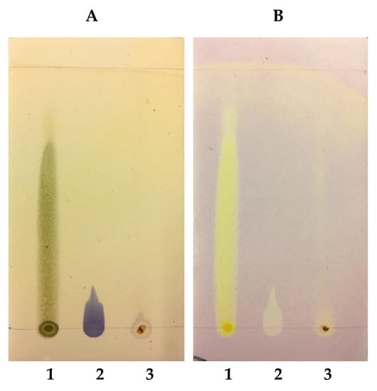 4.4. Analysis of Antioxidant Activity by Thin-Layer Chromatography (TLC)