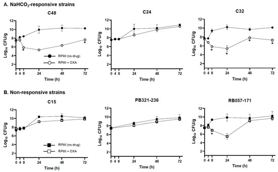 - Ersoy, S.C.; Otmishi, M.; Milan, V.T.; Li, L.; Pak, Y.; Mediavilla, J.; Chen, L.; Kreiswirth, B.; Chambers, H.F.; Proctor, R.A. Scope and predictive genetic/phenotypic signatures of ‘bicarbonate [NaHCO3]-responsiveness’ and β-Lactam sensitization among methicillin-resistant Staphylococcus aureus (MRSA). Antimicrob. Agents Chemother. 2020, 64, e02445-19. [Google Scholar] [CrossRef]