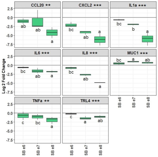 2.3. SB Live Yeast Supplementation to ETEC-Challenged Mpigut-IVM Leads to Changes in Gene Expression Profile of IPI-2I Intestinal Cells