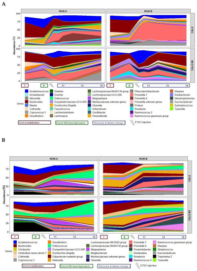 - Bin, P.; Tang, Z.; Liu, S.; Chen, S.; Xia, Y.; Liu, J.; Wu, H.; Zhu, G. Intestinal microbiota mediates Enterotoxigenic Escherichia coli-induced diarrhea in piglets. BMC Veter. Res. 2018, 14, 1–13. [Google Scholar] [CrossRef] [PubMed] [Green Version]