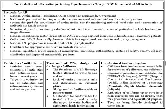 Flow diagram representing, in brief, the protocols for antimicrobial resistance and benefits of using CWs in various organizations/institutes in India.