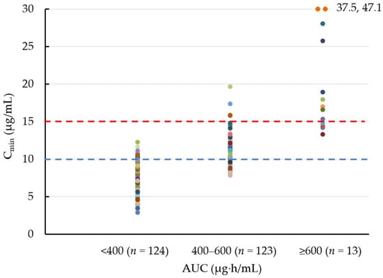 Ueda, T.; Takesue, Y.; Nakajima, K.; Ichiki, K.; Ishikawa, K.; Yamada, K.; Tsuchida, T.; Otani, N.; Takahashi, Y.; Ishihara, M.; et al. Validation of Vancomycin Area under the Concentration—Time Curve Estimation by the Bayesian Approach Using One-Point Samples for Predicting Clinical Outcomes in Patients with Methicillin-Resistant Staphylococcus aureus Infections. Antibiotics 2022, 11, 96. https://doi.org/10.3390/antibiotics11010096