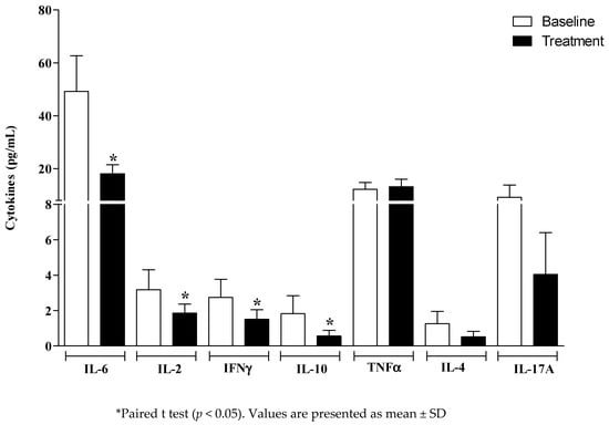 Chicago/Turabian StyleRibeiro, Adriana Barbosa, Aline Barbosa Ribeiro, Camila Borba de Araújo, Caroline Vieira Fortes, Lorena Mosconi Clemente, Helena de Freitas Oliveira Paranhos, Evandro Watanabe, Helio Cesar Salgado, and Cláudia Helena Silva-Lovato. 2022. "Effect of a Hygiene Protocol on Denture-Related Stomatitis Remission, Local Inflammatory Factors, and Hemodynamic Responses by Arterial Pressure" Antibiotics 11, no. 10: 1320. https://doi.org/10.3390/antibiotics11101320