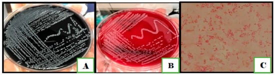 One hundred unpasteurized milk samples were collected: 50 samples from goats, and 50 samples from cows. Sample processing started with adjusting the pH of milk to 7.6, followed by centrifugation at 12,000× g for 4 min. The supernatant was discarded, and the pellet was suspended in 1 mL pre-enriched Bolton broth, then the volume was completed to 10 mL by Bolton broth. Each sample was subjected to pre-enrichment and enrichment steps under microaerobic conditions (5% N2, 10% CO2, and 85% O2) using CampyGen bags (Oxoid, Hampshire, UK). A loopful of the mixture was streaked on modified charcoal cefoperazone deoxycholate agar (mCCDA) plates (Oxoid, Hampshire, UK) and incubated under microaerobic conditions at 42 °C for 48 h.