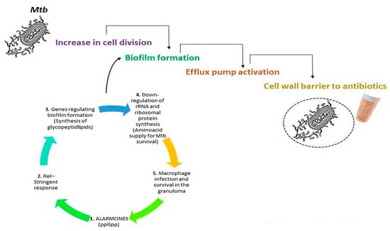 - Dahl, J.L.; Kraus, C.N.; Boshoff, H.I.M.; Doan, B.; Foley, K.; Avarbock, D.; Kaplan, G.; Mizrahi, V.; Rubin, H.; Barry, C.E. The Role of RelMtb-Mediated Adaptation to Stationary Phase in Long-Term Persistence of Mycobacterium tuberculosis in Mice. Proc. Natl. Acad. Sci. USA 2003, 100, 10026–10031. [Google Scholar] [CrossRef]