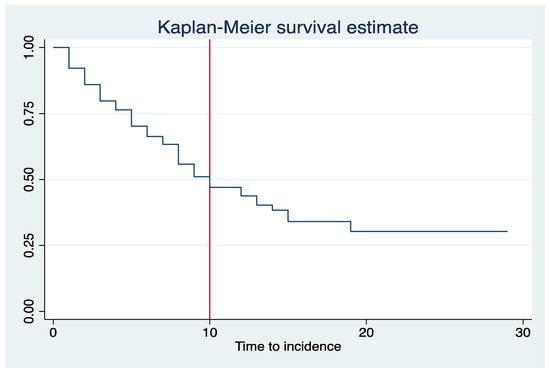 Kaplan–Meier curve for the incidence of AKI among colistin-treated patients.