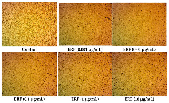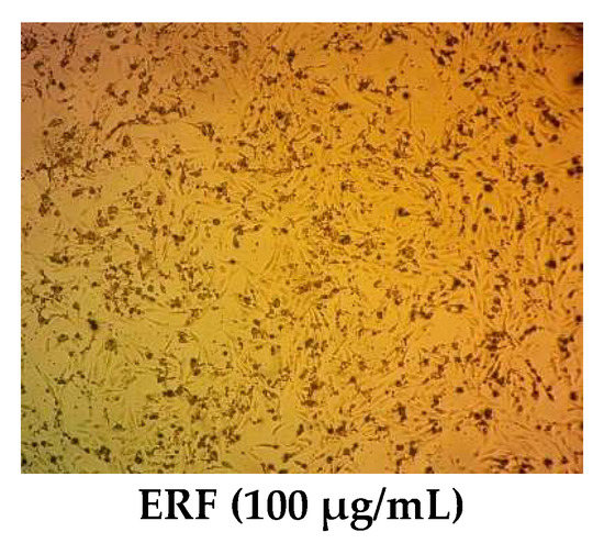 Photomicrographs of HepG2 cells treated with ERF (100× magnification).