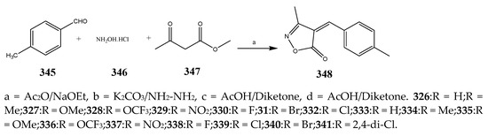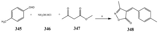 - Ferouani, G.; Nacer, A.; Ameur, N.; Bachir, R.; Ziani-Cherif, C. Facile Heterocyclic Synthesis and Antibacterial Activity of Substituted Isoxazol-5 (4H)-ones. J. Chin. Chem. Soc. 2018, 65, 459–464. [Google Scholar] [CrossRef]