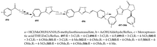 - Ahmed, S.; Zayed, M.F.; El-Messery, S.M.; Al-Agamy, M.H.; Abdel-Rahman, H.M. Design, synthesis, antimicrobial evaluation and molecular modeling study of 1, 2, 4-triazole-based 4-thiazolidinones. Molecules 2016, 21, 568. [Google Scholar] [CrossRef] [PubMed]