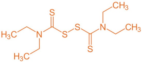 - National Center for Biotechnology Information Disulfiram: Chemical and physical properties. PubChem Compound Summary. CID 3117. Available online: https://pubchem.ncbi.nlm.nih.gov/compound/Disulfiram. (accessed on 24 July 2022).
