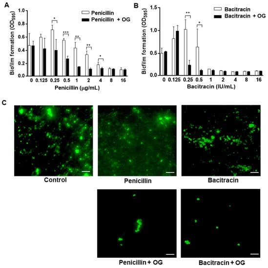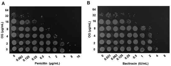 | OG (µg/mL) | Penicillin | Bacitracin | ||