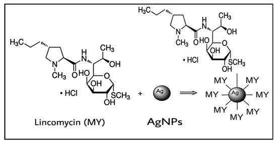 Chemical interaction of lincomycin with AgNPs.