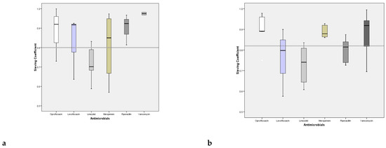 (1) Our results reveal a high Cs for all antibiotics, equal to or higher than those described in previous papers [15,26]. This is predictable given the type of drugs studied, with reduced Vd, as known and confirmed by us [5,25,26,29]. In fact, CVVH clearance in relation to total body clearance was significant, i.e., greater than 25% for all classes [5]. This may suggest that a reduced dosage for these antibiotics is not mandatory, taking into account the risk of being subtherapeutic and developing microbial resistance.
