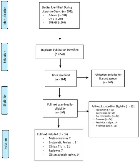 We identified 592 publications. After the removal of 228 duplicates, 364 publications were examined for inclusion and exclusion criteria (Figure 1). The screening strategy is also shown in Figure 1.
