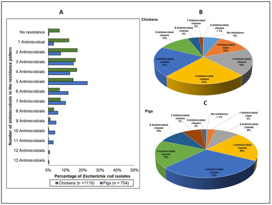 3.2. Antimicrobial Resistance in Escherichia coli Isolates