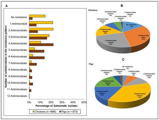 3.3. Antimicrobial Resistance in Salmonella Isolates