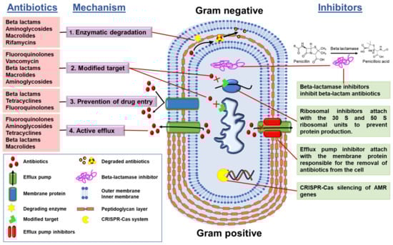 At least four mechanisms of bacterial antimicrobial resistance (Figure 3) have been well defined: