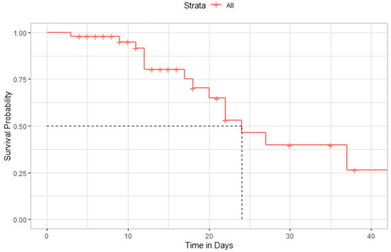 Kaplan–Meier Curve of survival rate after administration of Tocilizumab.