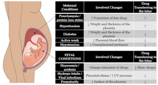 It is worth mentioning that the presence of these transporters fluctuates during pregnancy; hence, what can modulate the concentration of drugs that cross the placenta may vary in different stages of gestational age. Furthermore, in vitro studies have reported that inflammation also affects the expression of transporters. Finally, drugs structurally related to endogenous compounds can also be transported by facilitated diffusion [24,28].