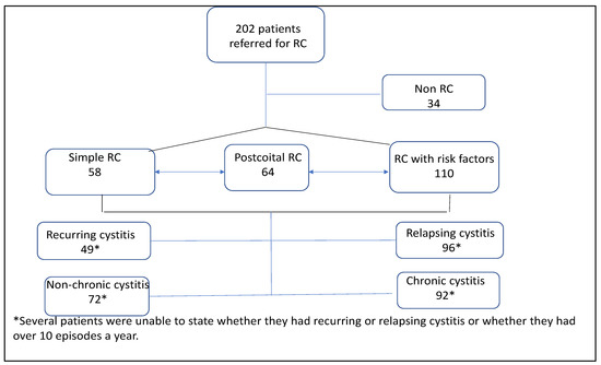 This study has several limitations. A recall bias was likely, as some women had a protracted history of RC and could not always remember the antibiotic compounds or investigations they had been prescribed. Not all could provide informative documentation. Furthermore, women who presented at the infectious diseases outpatient department were often referred by urologists who were aware of issues related to RC, potentially also resulting in a selection bias.