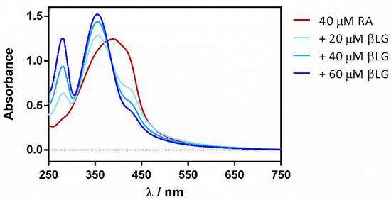 βLG addition effect on the absorption spectrum of free RA in PBS.