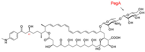 Ps. autotrophica KCTC9441 has been genetically engineered extensively. This work has delivered four disaccharide-containing analogues of NPP A1: (1) a 10-deoxy tetraene, NPP A2 [86]; (2) a heptaene with a double bond between C28 and C29, NPP B1 [87]; (3) a 10-deoxy heptaene, NPP B2 [88]; and (4) NPP A3, a tetraene in which mannose replaces the GlcNAc sugar [89]. The 10-deoxy tetraene and the heptaene NPP B1 had increased antifungal activity. The 10-deoxyheptaene NPP B2 had good activity and significantly reduced hemolytic activity. Replacing the GlcNAc of NPP A1 with mannose was detrimental, as the NPP A3 analogue was inferior in terms of antifungal activity and hepatotoxicity [89]. This indicates that the structure of the second sugar is important.
