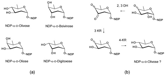 - Salas, J.A.; Mendez-Fernandez, M.D.C. Engineering the glycosylation of natural products in actinomycetes. Trends Microbiol. 2007, 15, 219–232. [Google Scholar] [CrossRef]