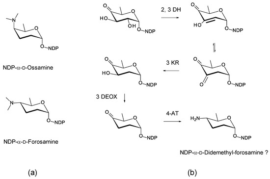 - Hong, L.; Zhao, Z.; Melançon, C.E.; Zhang, H.; Liu, H.-W. In Vitro Characterization of the Enzymes Involved in TDP-d-Forosamine Biosynthesis in the Spinosyn Pathway of Saccharopolyspora spinosa. J. Am. Chem. Soc. 2008, 130, 4954–4967. [Google Scholar] [CrossRef]