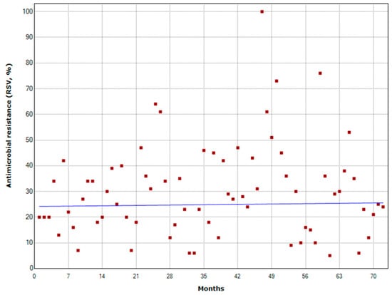 Figure 2A illustrates monthly public interest in the term “antimicrobial resistance” from 1 January 2016 to 31 December 2021. For each year, the annual peak of interest occurred in June 2016, October 2017, January 2018, November 2019 and 2020, and May 2021 (Figure 2B). The WAAW is celebrated from 18 to 24 November each year. Overall, public interest reached its peak in November 2019. However, no significant joinpoints were detected in this time series (Figure 3) and the analysis of weekly trends in public interest produced similar results (data not shown).